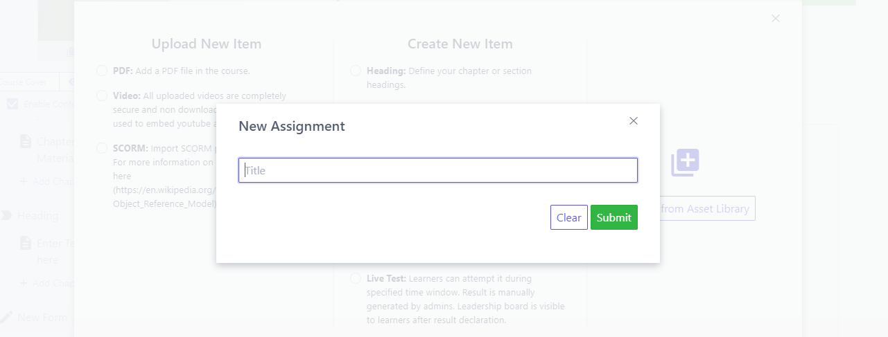 Attribuer des tâches aux apprenants est un excellent moyen d'évaluer leur compréhension d'un certain sujet ou d'un chapitre. Vous pouvez leur attribuer des tâches dans les différents formats disponibles.