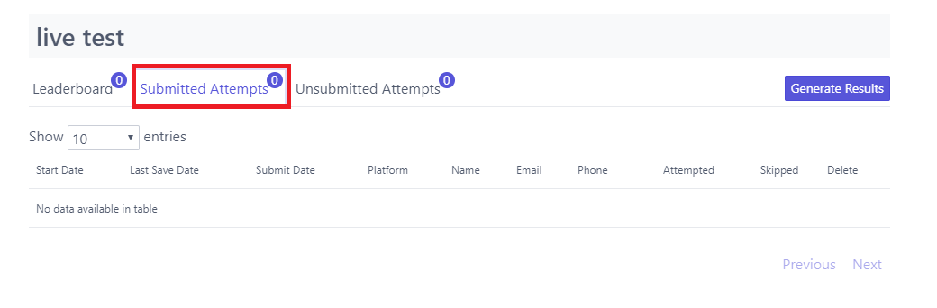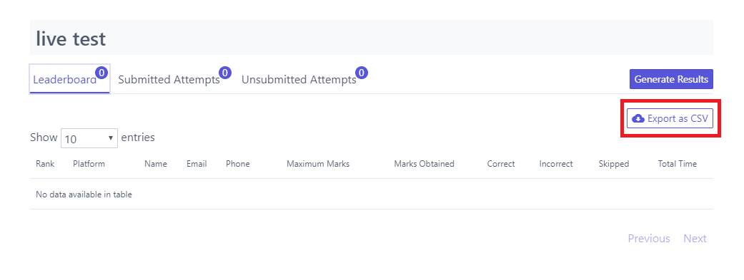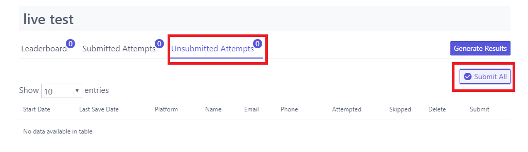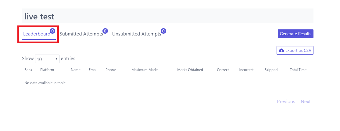 Les tests en direct sont effectués uniquement pendant une fenêtre fixe pour vérifier la capacité des apprenants à effectuer. Les résultats sont générés manuellement par les administrateurs. Le conseil d'administration est visible pour les apprenants après la déclaration des résultats